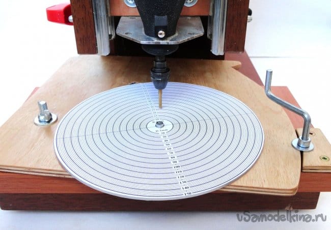 Описываемое приспособление (исходя из получившихся размеров конструкции) позволяет достаточно удобно, с приемлемой точностью вырезать и обрабатывать детали диаметром от 20мм до 150мм.