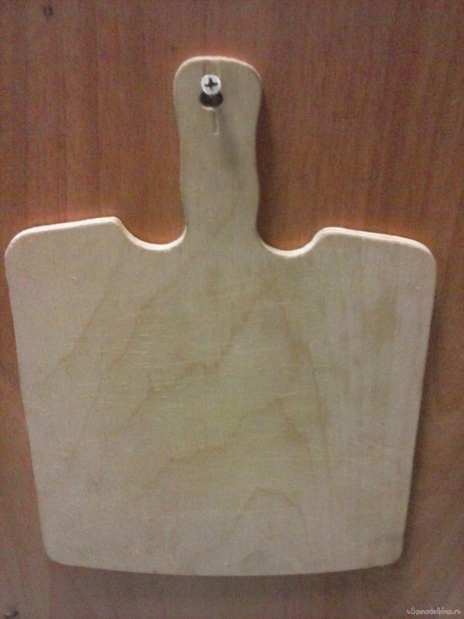 После вырезки и шлифовки можно сделать отверстие с помощью дрели для подвешивания доски на крючке или саморезе как это можно увидеть на фото.