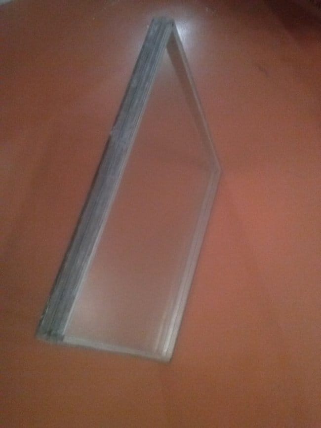 3.Возьмите стекло и отрежьте каждую сторону на 5 мм меньше посадочного места фурнитуры для вашего стеклопакета (количество стёкол зависит от нужного стеклопакета, у меня три).