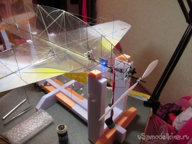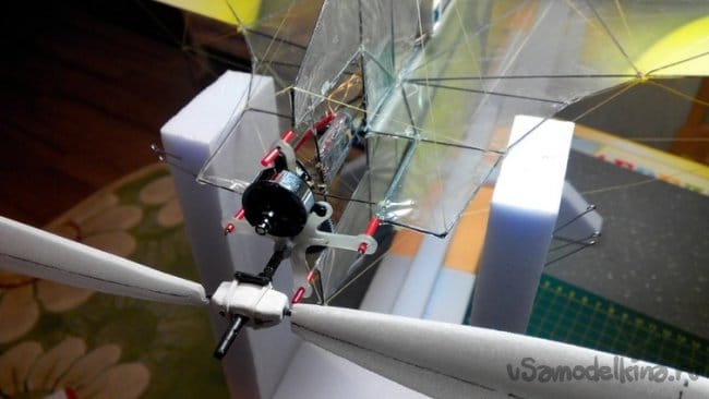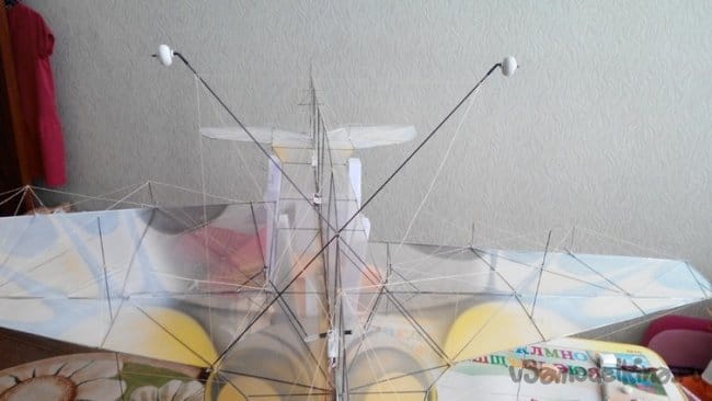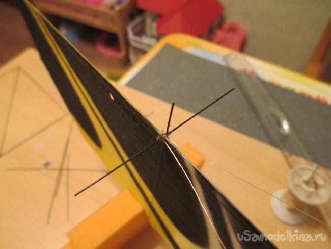 Стойки шасси из прутиков в 1мм с растяжками из арамидной нитки.