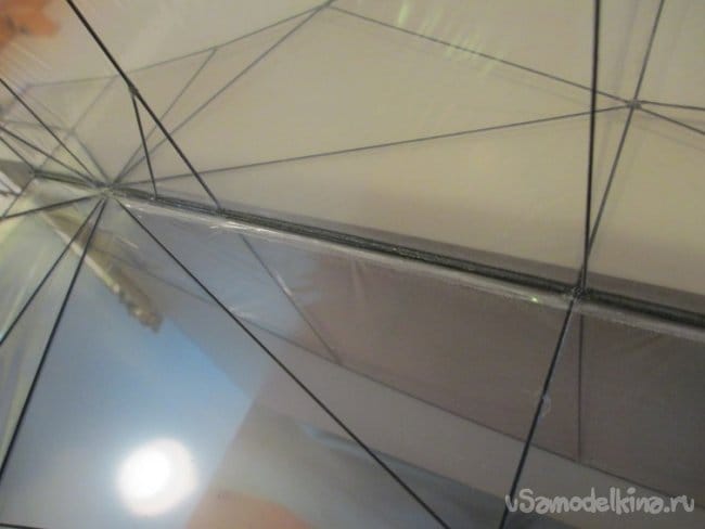 Я много работал с такими вариантами усилений и растяжек, прекрасно понимаю большую сложность этой операции. Установки ниточек на жиденьком каркасе обтянутом пленкой. Одно неправильное усилие и все перекосит.