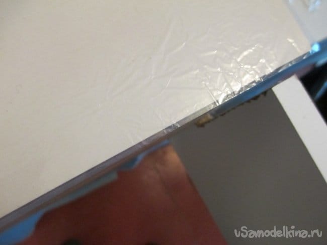 НЕТ, все ровно получилось, обрезаю по контуру пленку с отступом в 3 мм, заворачиваю края на каркас. самая сложная операция завершилась, все прямо и ровно.