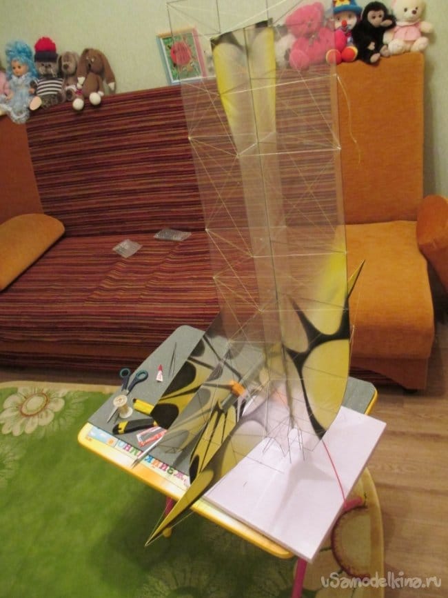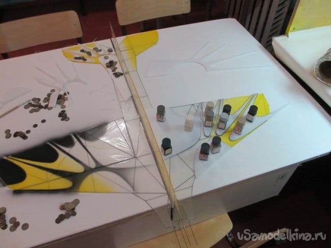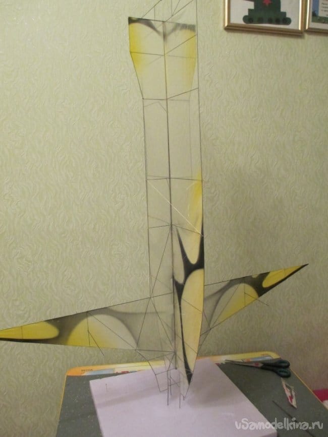 Затем крылья с упорами и контрфорсами из угольных палочек интегрированных в каркас.