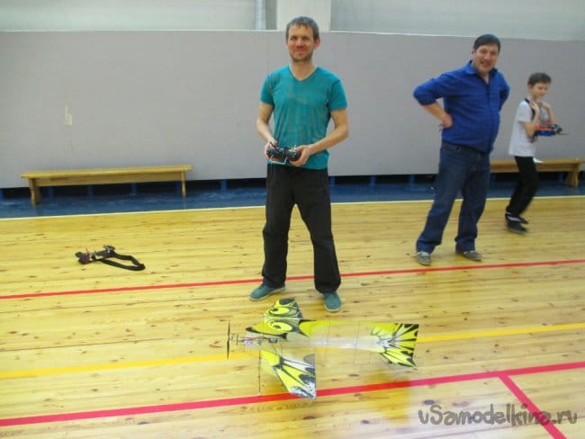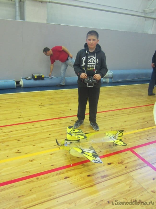 Перед соревновании нужно облетать и настроить самолетик. маленький школьный спортзал совершенно не подходит. Нужен достаточно большой простор.