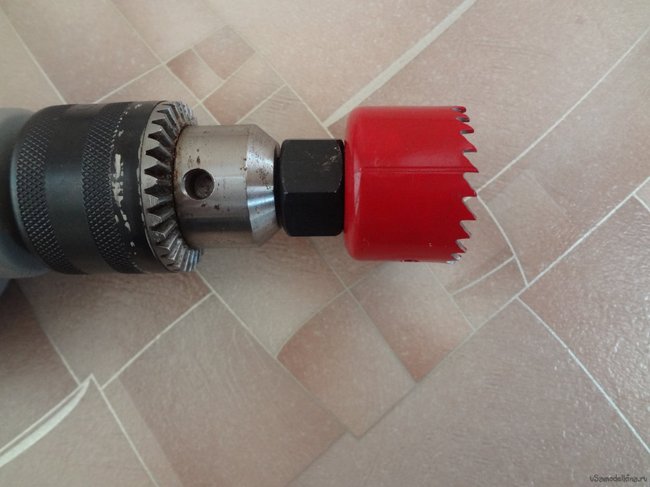 Для начала проделаем отверстие с помощью коронки по дереву в распред. коробке. Коронку взял размером чуть меньше самого вентилятора.