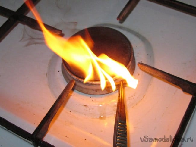 От куска ленты отрезаю два небольших кусочка, и обжигаю края.