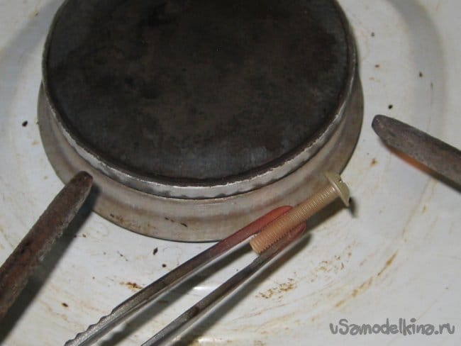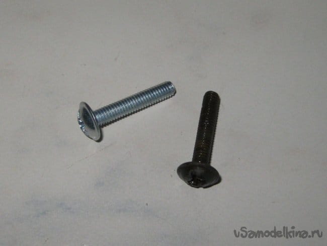 А чтобы метизы не выбивались из общего чёрного стиля, давно использую простой способ их доработки. Раскаляю,