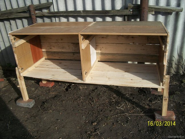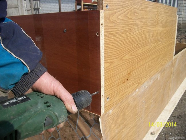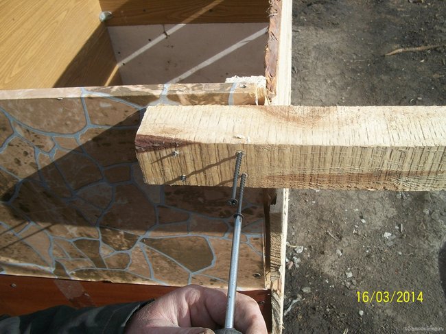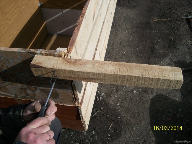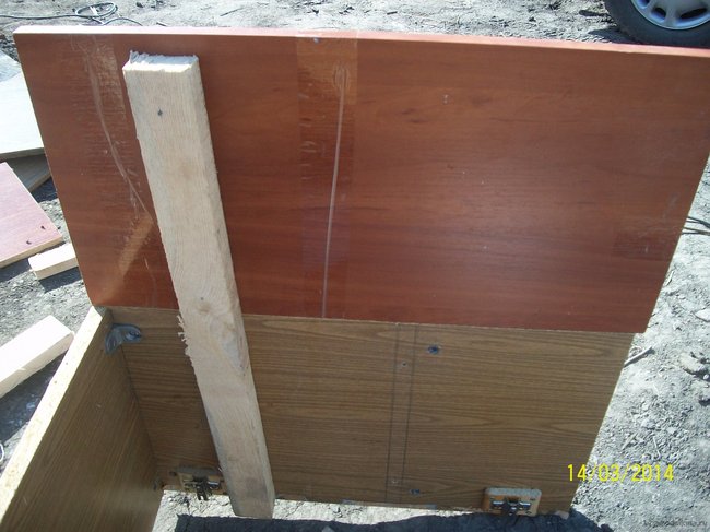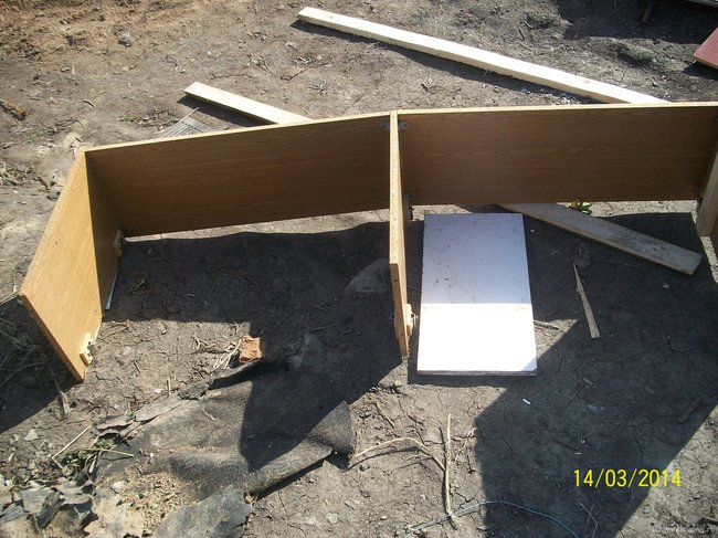 Из найденых в хозяйстве кусочков ДВП и планочек наростили боковые стенки и верх нашей будущей клетки