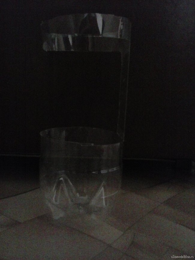Далее выворачиваем наизнанку верхний круг, загибаем вниз и надеваем на дно бутылки.