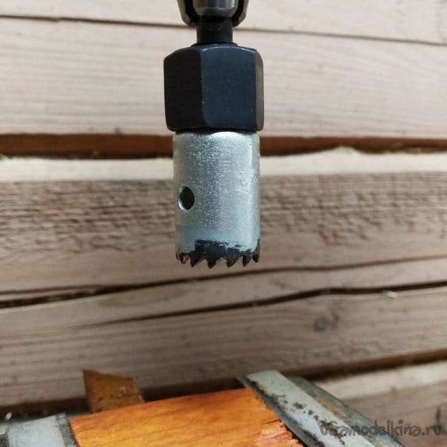 Выбрал я коронку на 19, по размеру кольца моего и зажал в патрон. Логично.