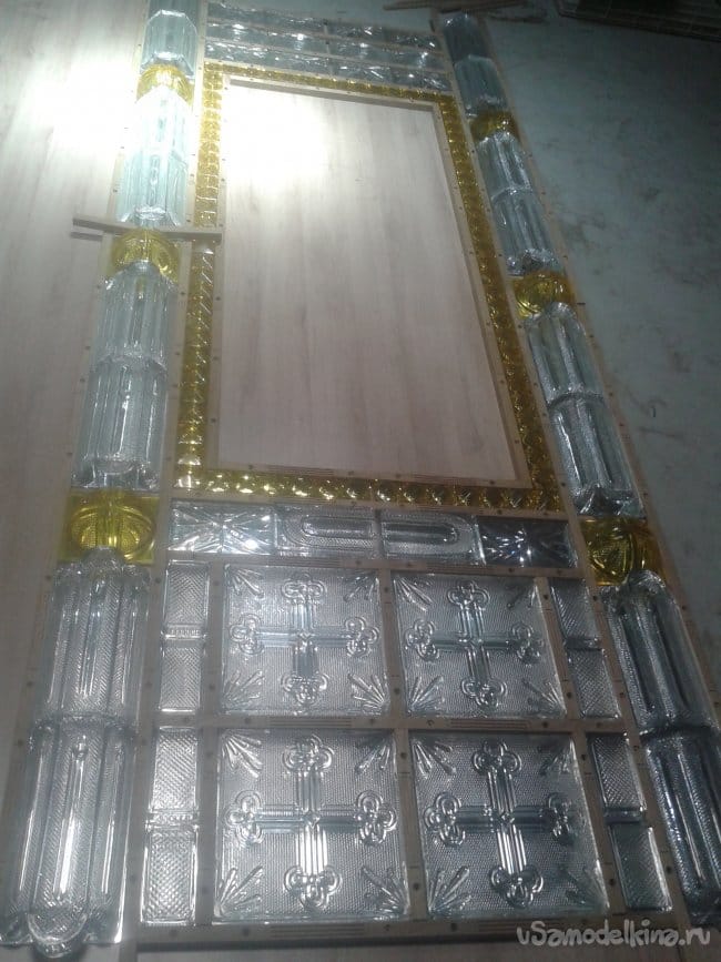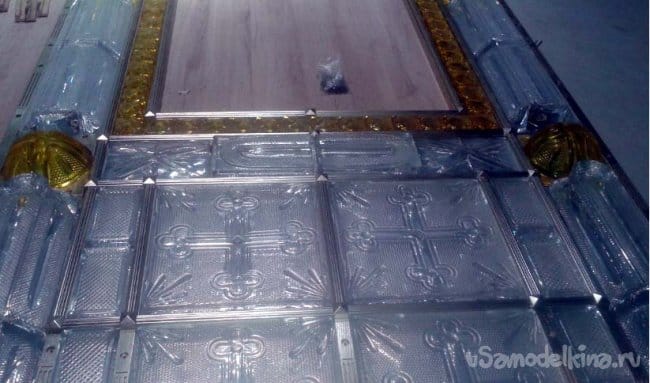 Ну вот этот обклад готов к установки на икону. Представитель церкви одобрил конструктив. Остальные иконы будут обрамляться на месте. И засверкает обновленный иконостас своим величием как в былые времена.