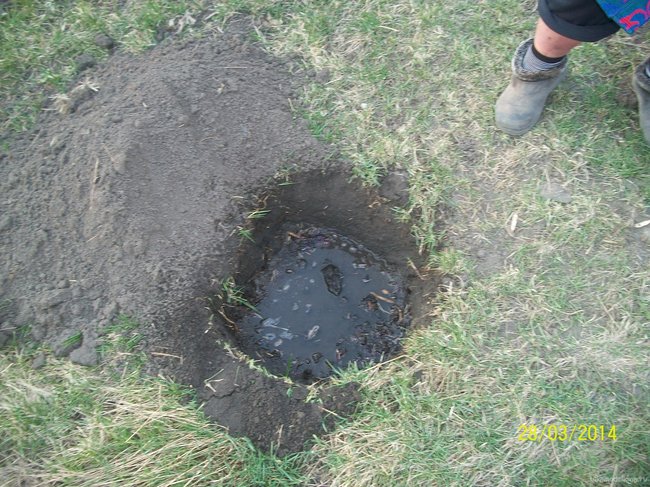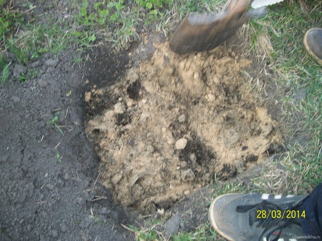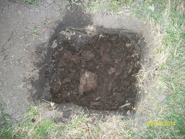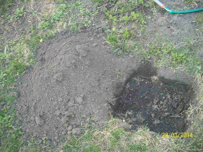Теперь выкапываем ямку.Я делаю где-то 40-50 см с каждой стороны и также в глубь.Если земля чистая-хорошо,если засорена травой-то желательно выбрать все корешки.