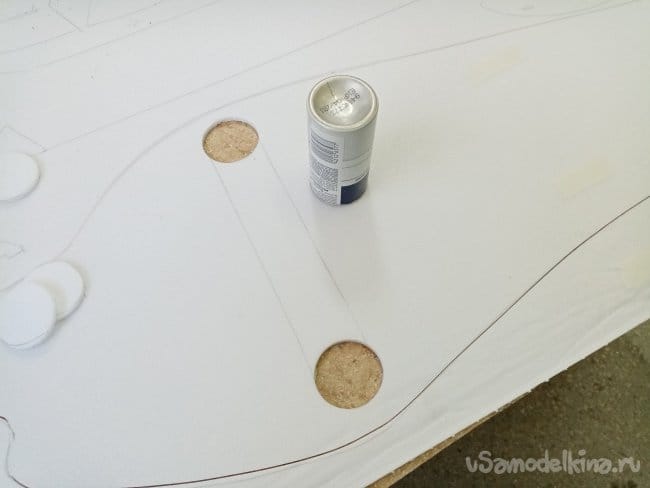 Вырезаю все элементы. Для начала вырезаю отверстия под винт. Попался в руки балончик, как раз в размер. Разрезал его на части, заточил края, пропилил вращением аккуратные отверстия. Прорезал по прямой линии получилось аккуратное отверстие под винт с красивыми радиусами.