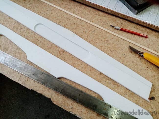 На крыле сразу прорезаю отверстия для монтажа предкрылков тонким скальпелем.