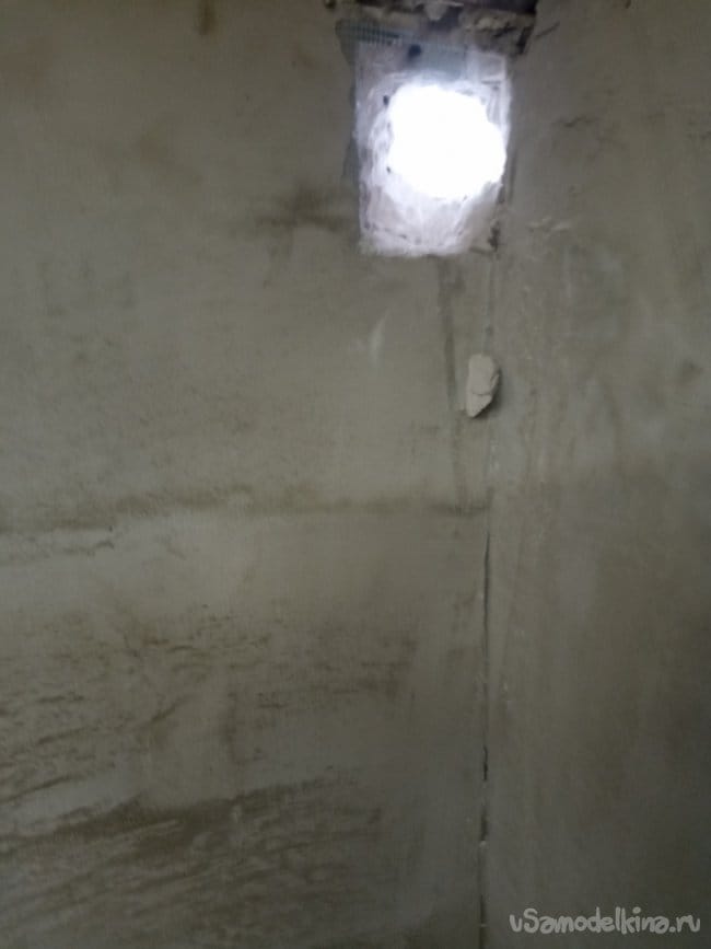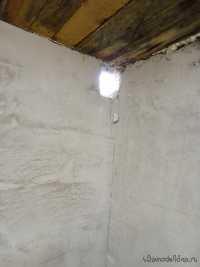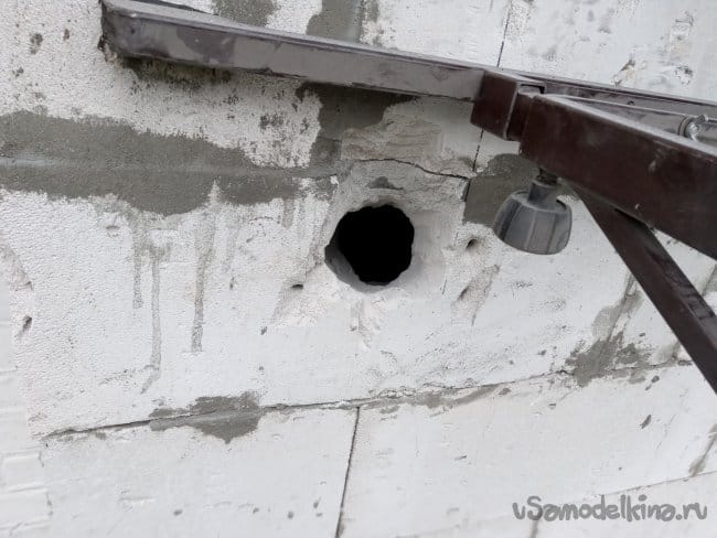 Угол выбрал не прямой, а 67 градусов. Изначально, для облегчения движения потока воздуха, я пробивал стену не перпендикулярно, а с наклоном.