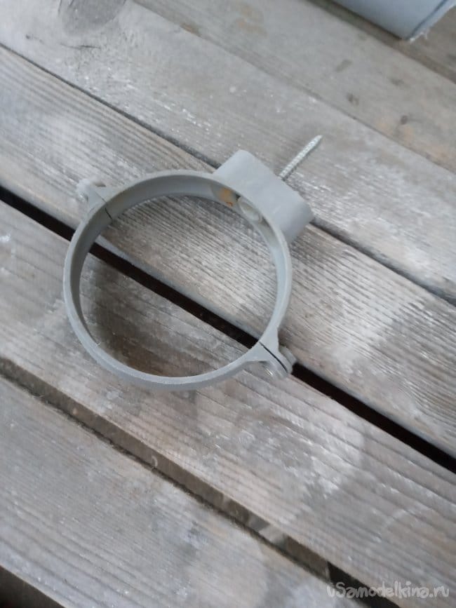 Осталось это всё смонтировать. Крепить трубу к стене я решил двумя хомутами, которые тоже у меня были: