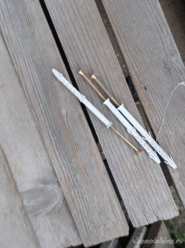 Прикрепить его к стене решил при помощи длинных шурупов быстрого монтажа, которые тоже у меня были в запасе: