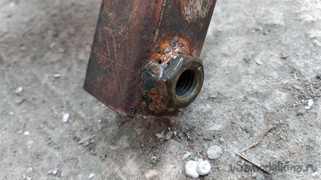 На обрезке профильной трубы 30 × 30 × 2, длиной 100 мм.
