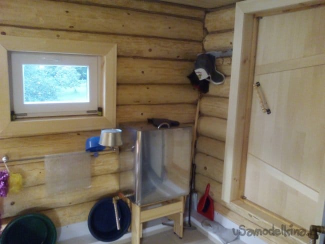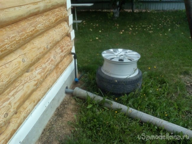 Слив пока не доделал. Но будет просто – 50 - я труба уходит в яму, заложенная старыми покрышками, вот и все. Объемы стока небольшие, вода спокойно уходит в землю.