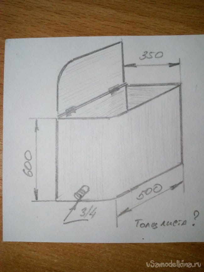 Бак 100 л, по своим чертежам, заказал у местных умельцев. Скруглил для безопасности один угол. Вроде не плохо получилось. Из остатков досок смастерил постамент.