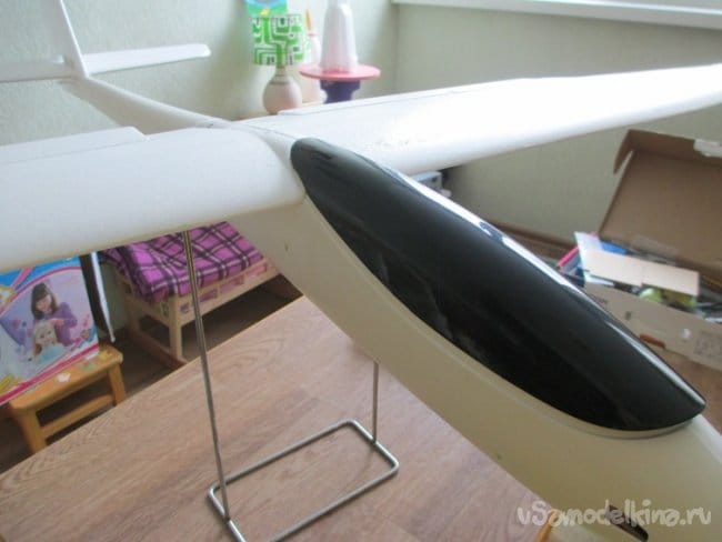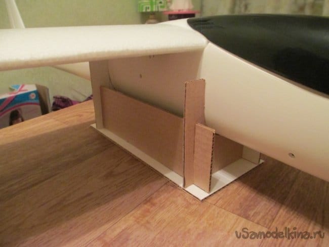 При работа с планером он редиска катается по столу и нормально не устанавливается, все наперекосяк. Изготовил простейший стапель из картонной коробочки. Теперь все красиво стоит как.... не валится и не качается.
