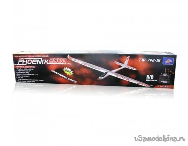 Младший сын подарил самолет Volantex Ranger 2000 V742-3 Phoenix 2000 EPO 2m RC Glider размах крыльев. Посылочка довольно быстро пришла. Покупали вариант с предустановленными сервоприводами, мотором, регулятором, складывающимся винтом.