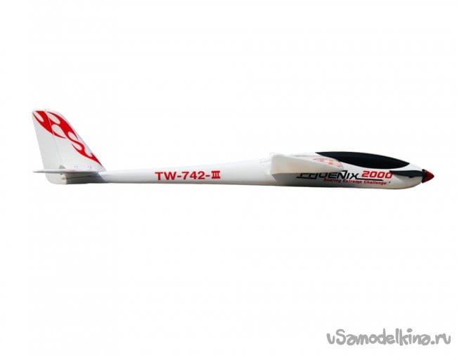 Если прикинуть, в руках без полетов. Вряд ли это паритель, скорее всего большой самолет. профиль крыла скорее Е387. Но как первый вариант для желающих научиться полетам на планерах вполне подойдет. Есть флапероны, элероны, можно поэкспериментировать с настройками типа "паритель", заходами на посадку.