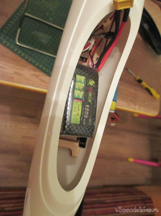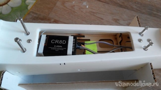 Переместил приемник ближе к установке крыла, удобнее провода втыкать. После закрепил приемник вообще вертикально.