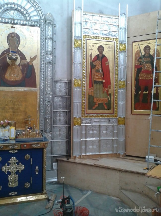 И снова здравствуйте. После публикации заметки «Хрустальный иконостас в Дятьково» прошло время, за этот период со склада хрустального завода подготовленный обклад был переправлен в церковь для облачения иконы. В храме полным ходом идут реставрационные работы.
