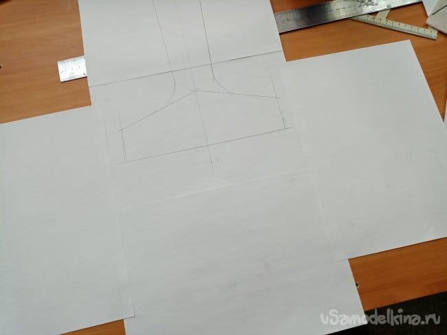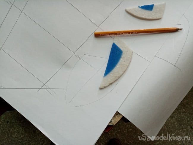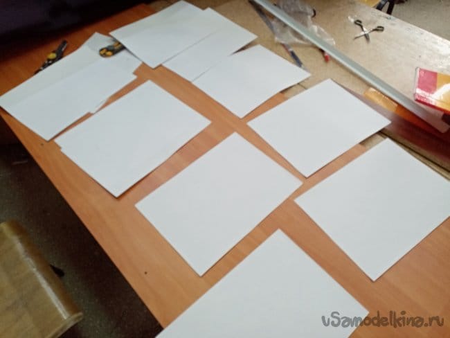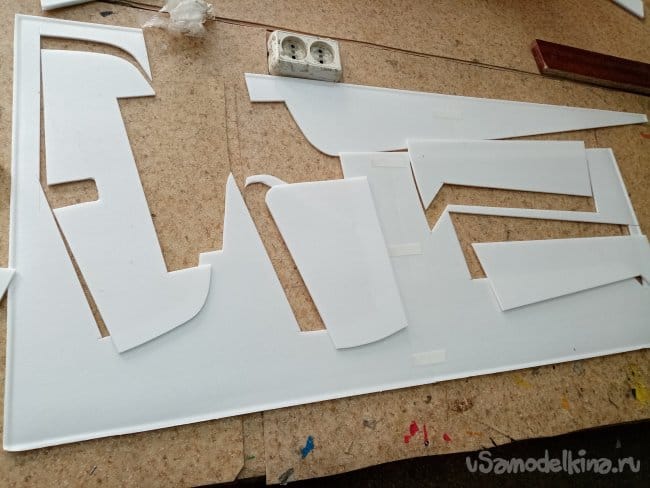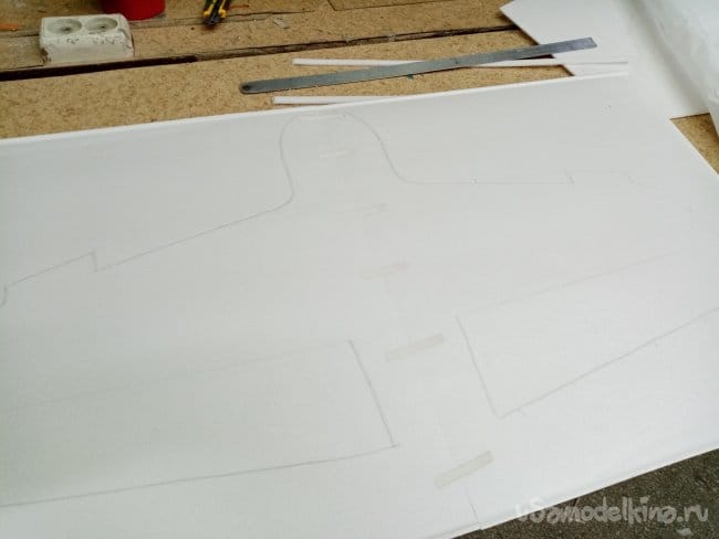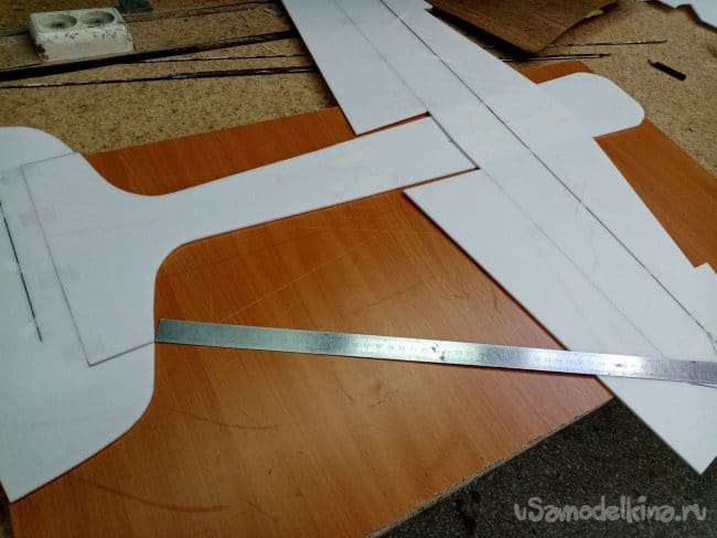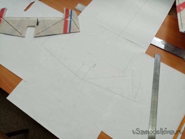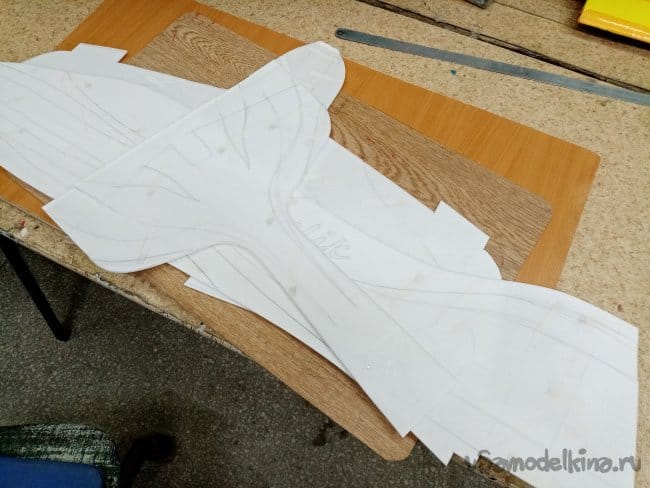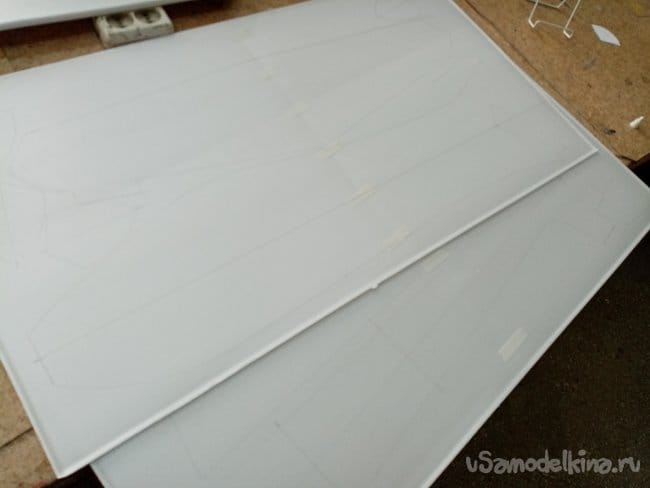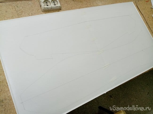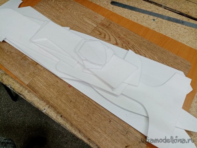 Первым делом склеил простынку достаточно большого размера и начал копирование модели из оставшихся запчастей. Расчертил в размер и нарезал шаблонов.