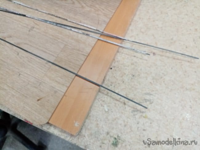 Из карбоновых прутиков в 1мм делаю расчалки усиления хвостика и крыльев.