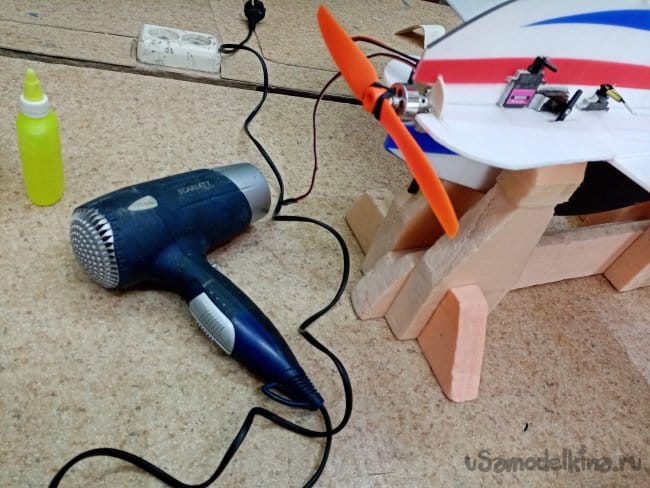 После приклейки протягиваю тяги управления на руль высоты и руль направления из рыболовной плетенки.