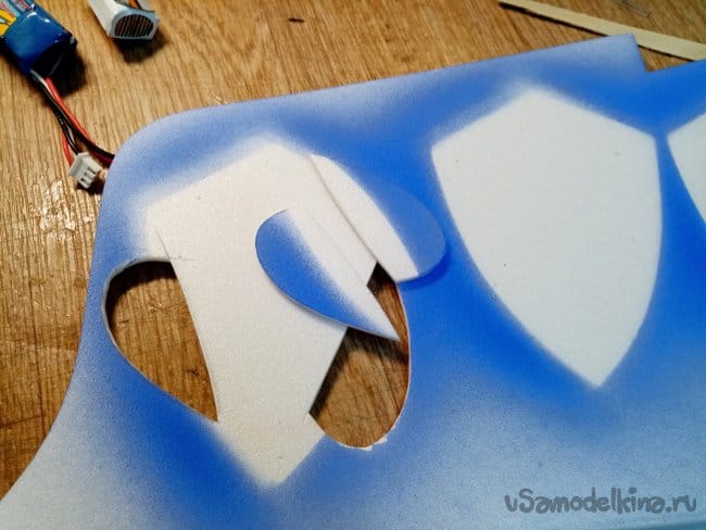 Готовые элементы модели решил окрасить аэрографом. Скопировал оригинальный рисунок на кальку, нарезал составных трафаретов из потолочной плитки.