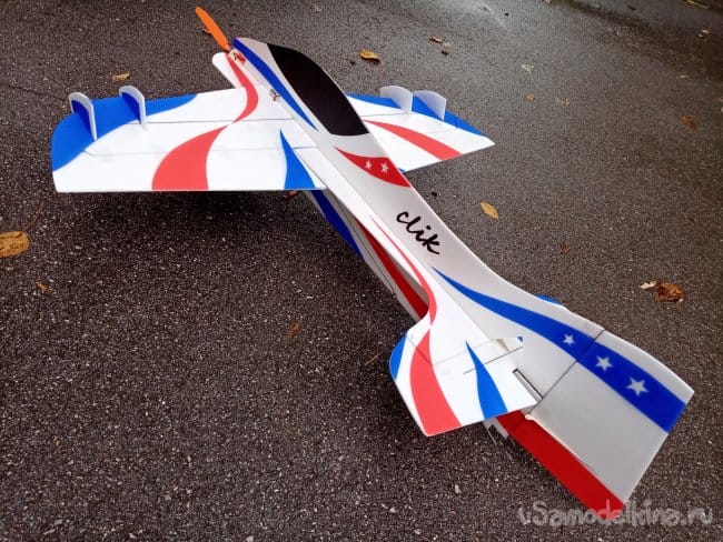 Мне в руки попались запчасти сломанной модели CLIK. Не так давно, это была весьма распространенная модель для зальных полетов. Неоднократно видел её полеты на соревнованиях летела моделька очень хорошо. Много предложений и в интернет магазинах. Самолетик изготовлялся из ЕРР неубиваемого материала. Однако в моем случае пилот все таки умудрился разломать его.