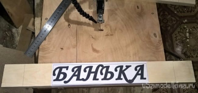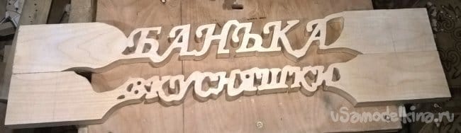 Наклеивал готовые, надписи и узоры на заготовки затем лобзиковым станком выпиливал.