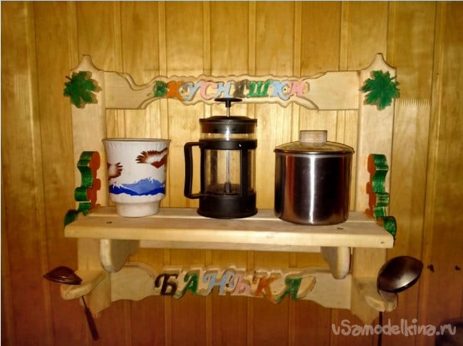 В данной статье опишу свой авторский проект по изготовлению своими руками небольшой полки в парилку. На ней будут у меня стоять ёмкости для запаривания различной травы. Баня занимает в жизни моей семьи свое почетное место. Каждую субботу наша баня топится и радует нас своим уютом. До этого покупали разные масла в магазинах, теперь запарки для бани изготавливаем своими руками. Специальный сбор трав, разбавляется в ёмкости и после чего эта вода поливается на камни.