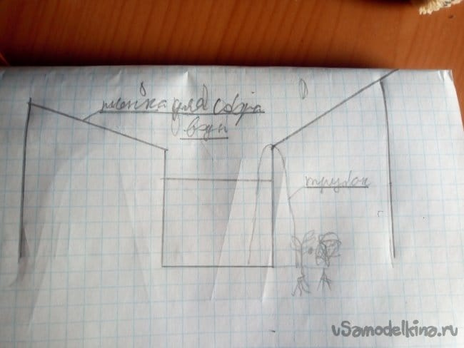 Также можно собирать в ёмкость дождевую воду сделав воронку из пленки