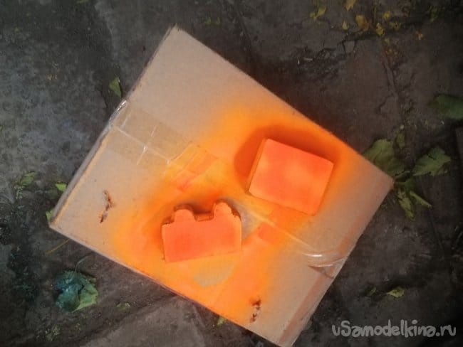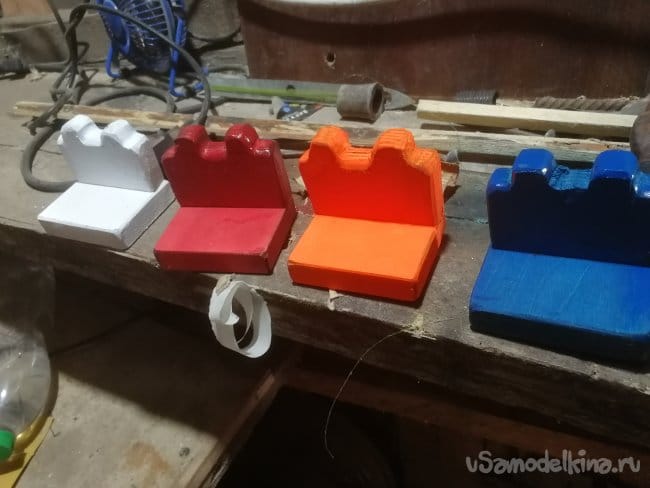 Вырезал из фанерки кусочки, так чтобы были похожи на сиденья и покрасил