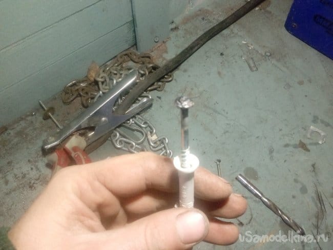 Заваривал шляпки винтов под дюбеля, чтобы их нельзя было выкрутить, а вместо вкручивания их можно забивать.