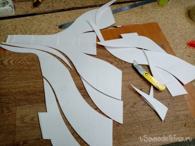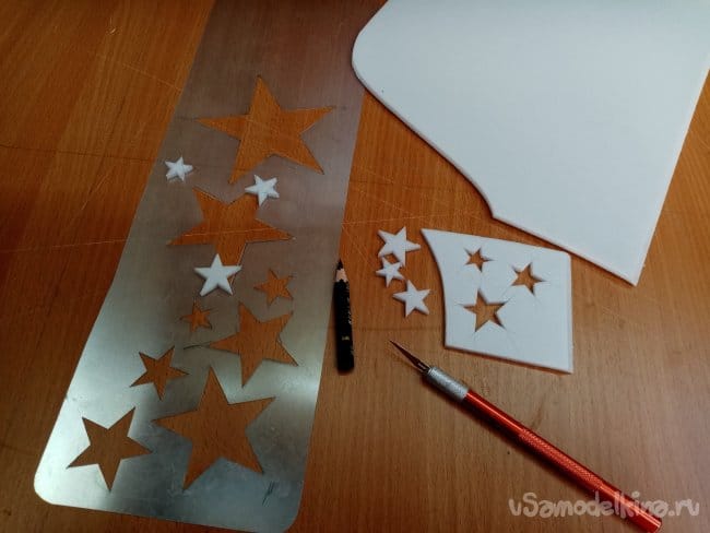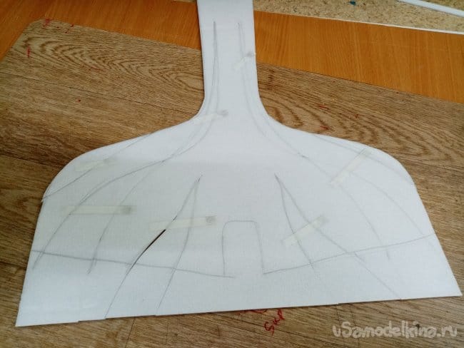 Затем по разметке разрезаю трафарет. Внешний контур его точно равен размерам детали модели. Чтобы не возиться с совмещением.