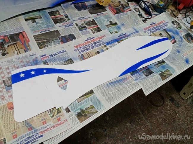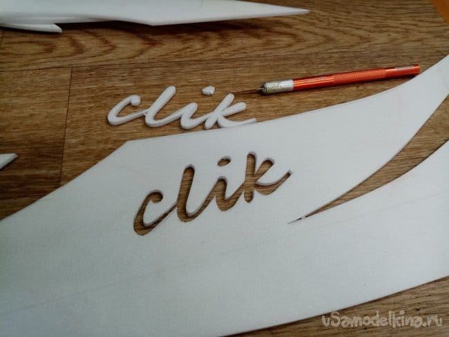 На фюзеляже вырезаю надпись, тонким скальпелем. Звездочки.