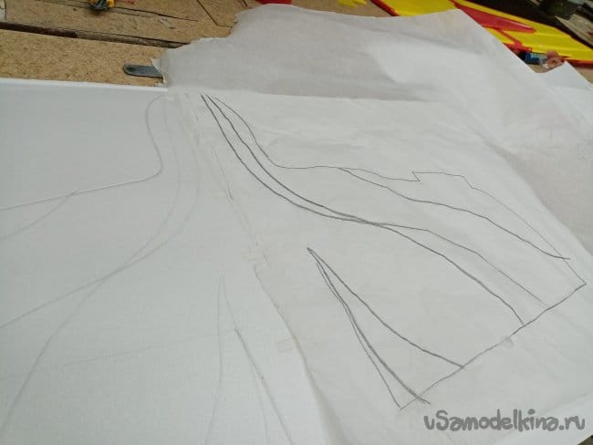 С обломков оригинальной модели переношу рисунок на кальку.
