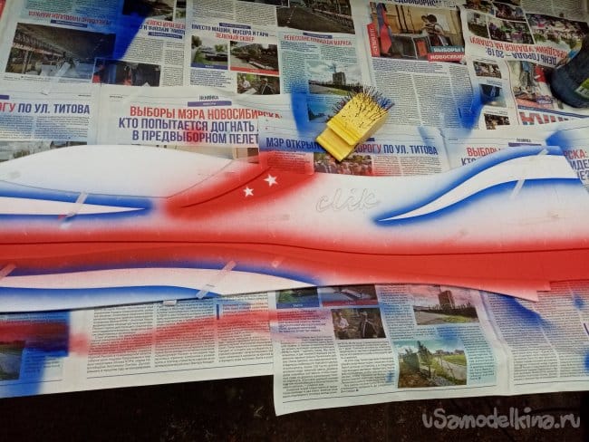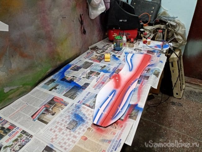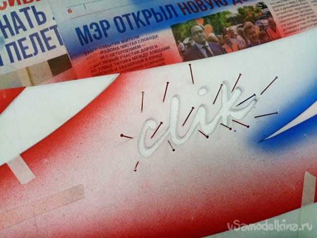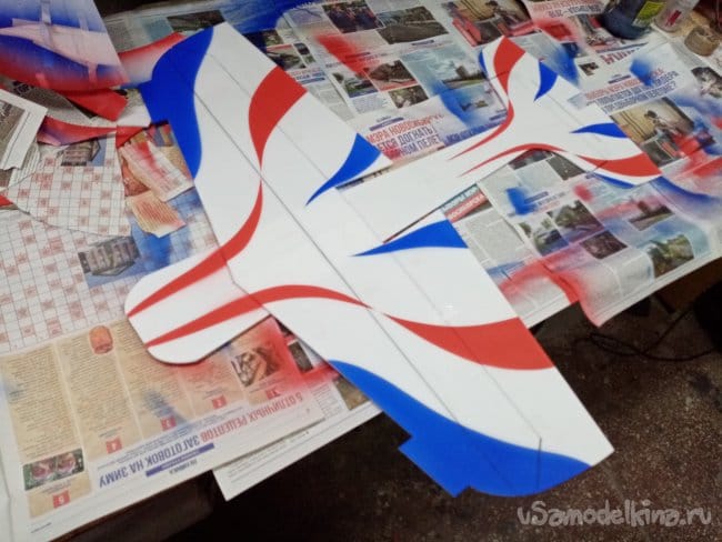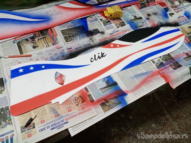 Во время изготовление копии зальной модели класса F3P CLIK, принято решение раскрасить самолетик весьма качественно. Акриловой художественной краской аэрографом.