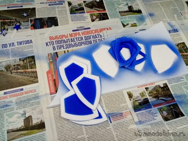 Все элементы трафаретов готовы, скреплены временно малярным скотчем. Развожу синюю акриловую и начинаю.