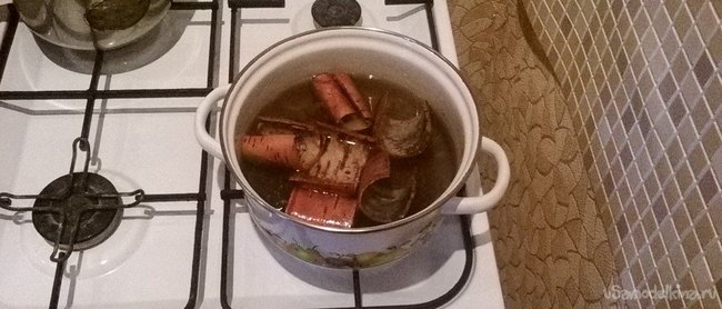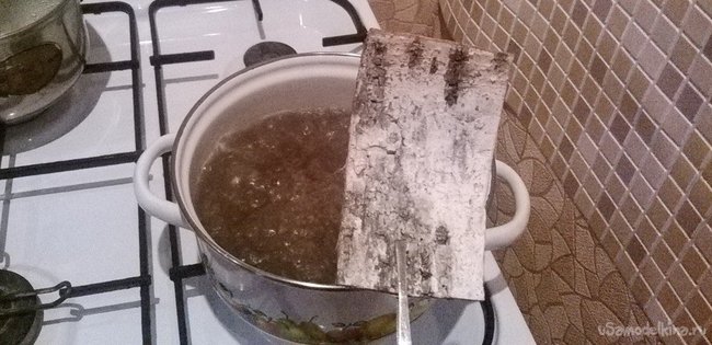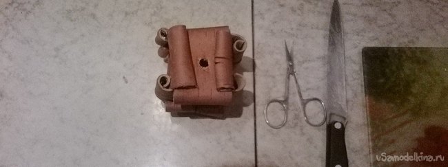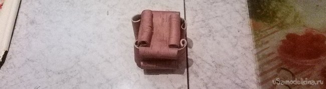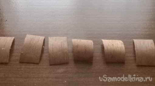 7. Вернемся к 6 сторонам будущей погремушки. Для того, чтобы их соединить, потребуется кипящая вода, которая будет сворачивать бересту в трубочку.