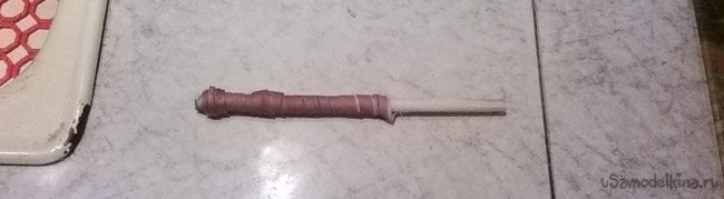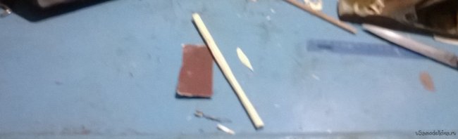 4. Теперь воспользуемся рубанком. Потребуется найти какую - нибудь деревянную заготовку и сделать из нее округленную палку. Длина палки 20 см. Диаметр около 1 см. Если не получается рубанком то можно ножиком.