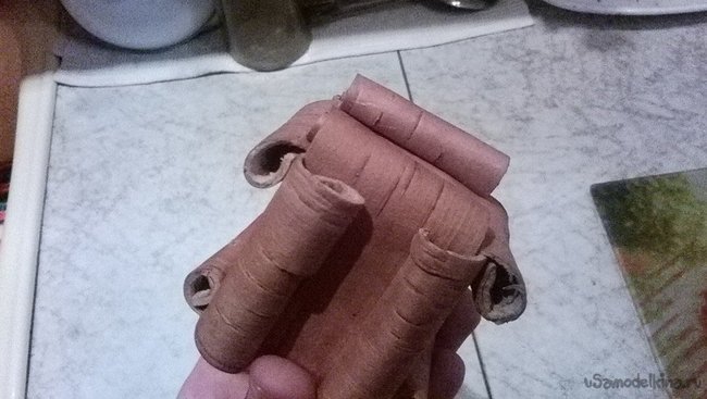 8. Когда лоскутки примут форму трубки, достать и начать их соединять в быстром темпе. Это самый сложный этап изготовления. Один человек с двумя руками не справится.