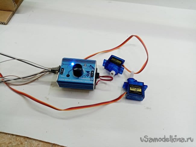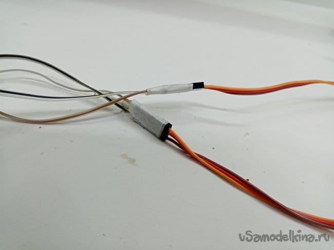 Проверяю, сервотестером. Соединения фиксирую еще и малярным скотчем.