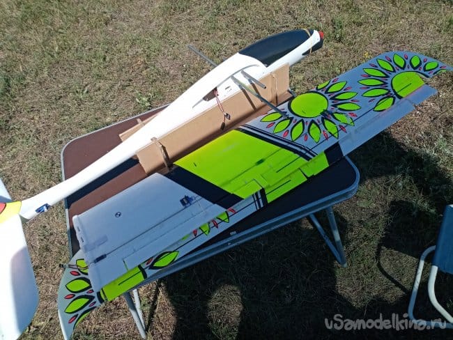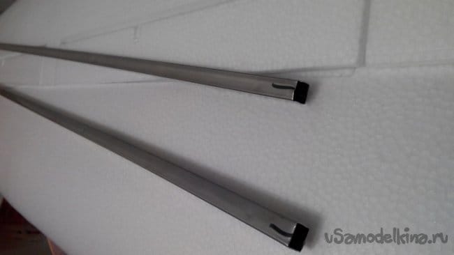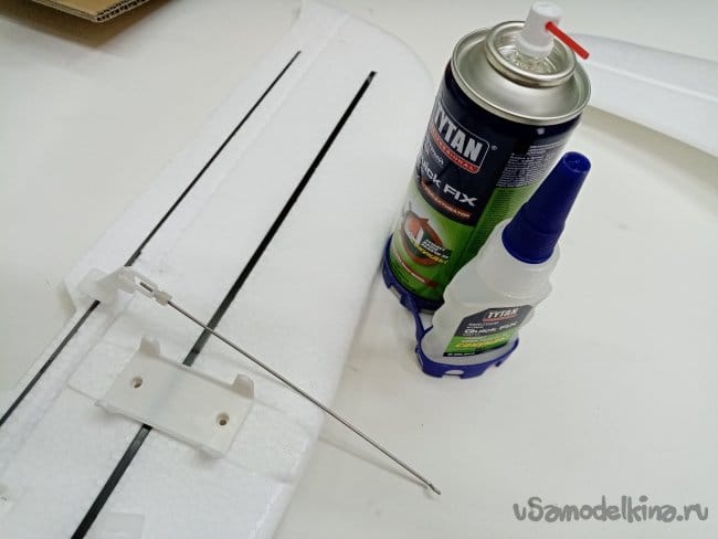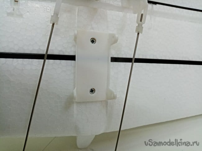 Крылья одеваются на две достаточно толстые алюминиевые трубы. Которые фиксируются в отверстия фюзеляжа.