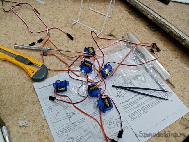 Собрал в кучу все сервоприводы с удлинителями.